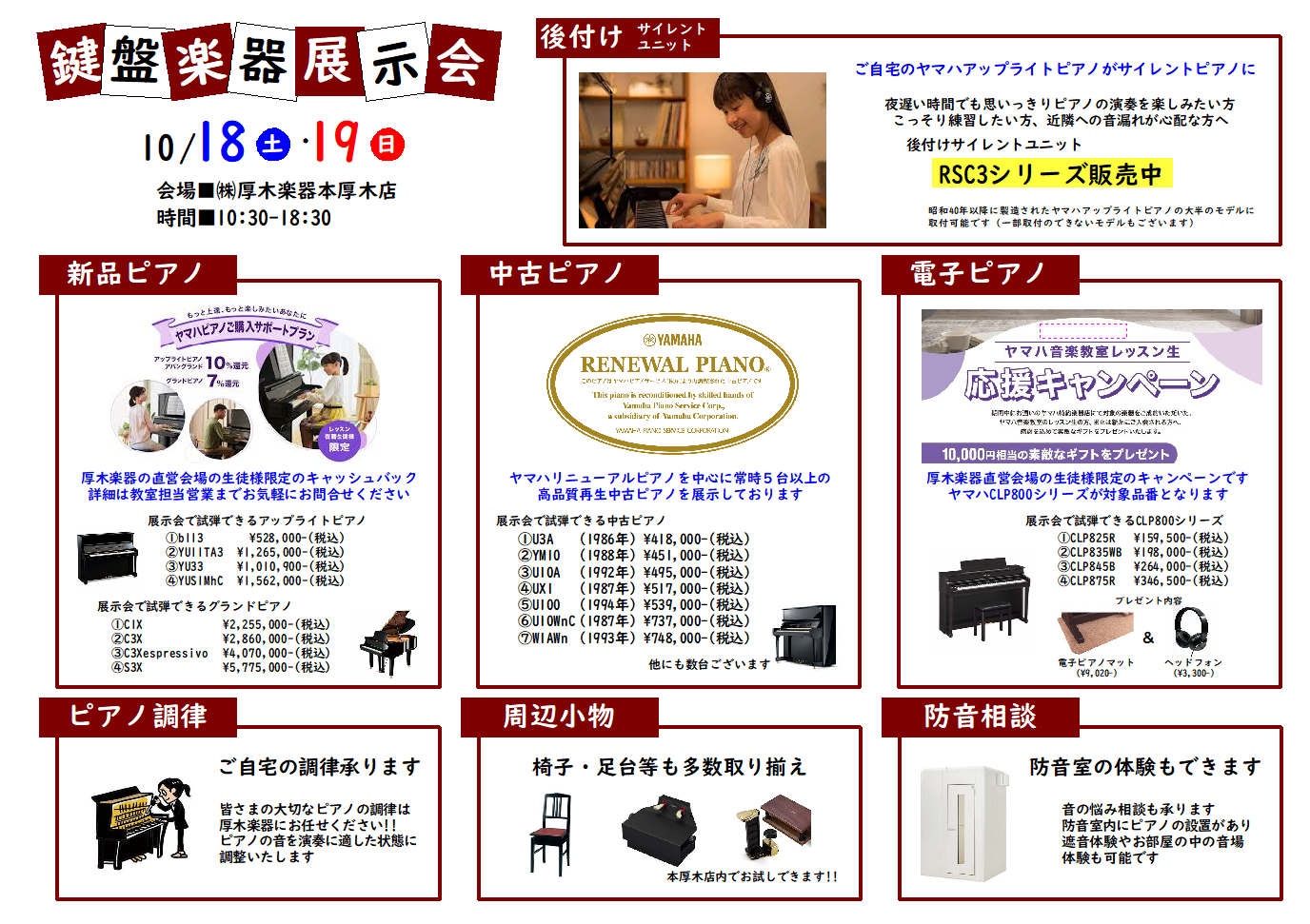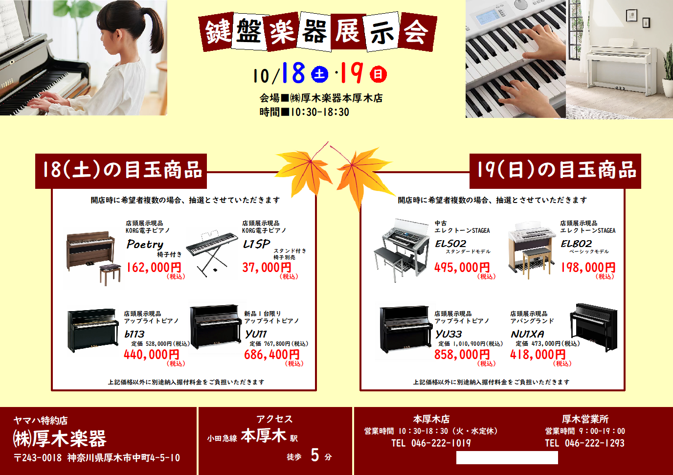 10月18日(土)、19(日)の2日間、鍵盤楽器展示会を開催します。