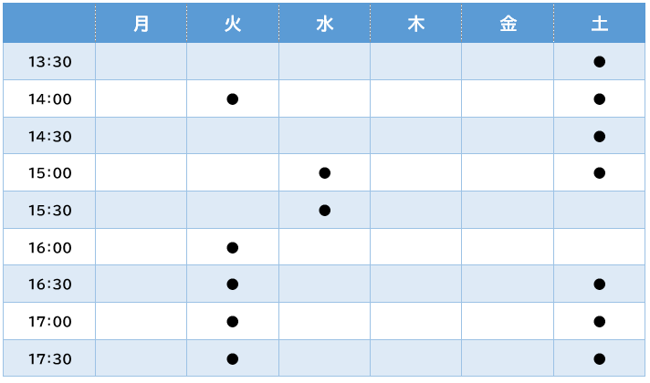 ※最新の空き枠情報は、ご希望の教室へお電話でご確認下さい。