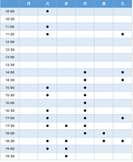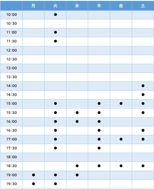 ※最新の空き枠情報は、ご希望の教室へお電話でご確認下さい。