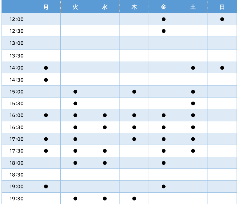 ※最新の空き枠情報は、ご希望の教室へお電話でご確認下さい。